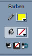 jetzt nimmst Du das Rechteckwerkzeug und schaltest die Füllfarbe aus. (nachdem das Rechteckwerkzeug ausgewählt ist, die Füllfarbe doppelklicken und danach unten auf das Icon klicken mit dem roten diagonalstrich. Diese Icon schaltet immer die Farbe unsichtbar, die das letzte mal geändert, oder doppelgeklickt wurde.) Bild 14 unten.
