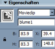 In Beispiel hitTest.fla sind zwei Blumen. Sie sind Instanzen von den MovieClip "blume1" und "blume2" mit den InstanzenNamen "blume1" und "blume2".