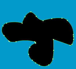 Als erstes Beispiel wollen wir ein Flamme züngeln lassen. Ein Fall, bei dem ich trotz seiner schlechten handhabkeit gerne einen FormTween verwende. Die sich dynamisch verwandelnde Form einer Flamme liesse sich mit BewegungsTwenn nur schlecht darstellen.