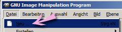 Schreibe zuoberst einen passenden Namen mit Endung .xcf