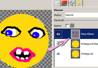 kannst Du nun mit dem Pinselwerkzeug ein Gesicht zeichnen.