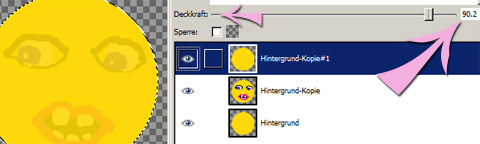 Nun ist das Gesicht und der gelbe Kreis zusammengeschmolzen auf einer Ebene.