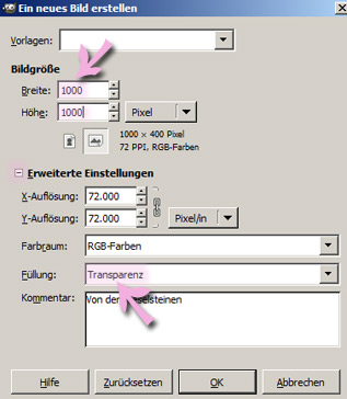 Ich habe hier 1000 mal 1000 Pixel gewählt.