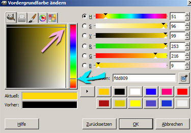klicke auf die Vordergrundfarbe hier gerade Schwarz;