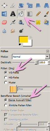 Jetzt klicke auf das Farbeimer Werkzeug im Werkzeugkasten.